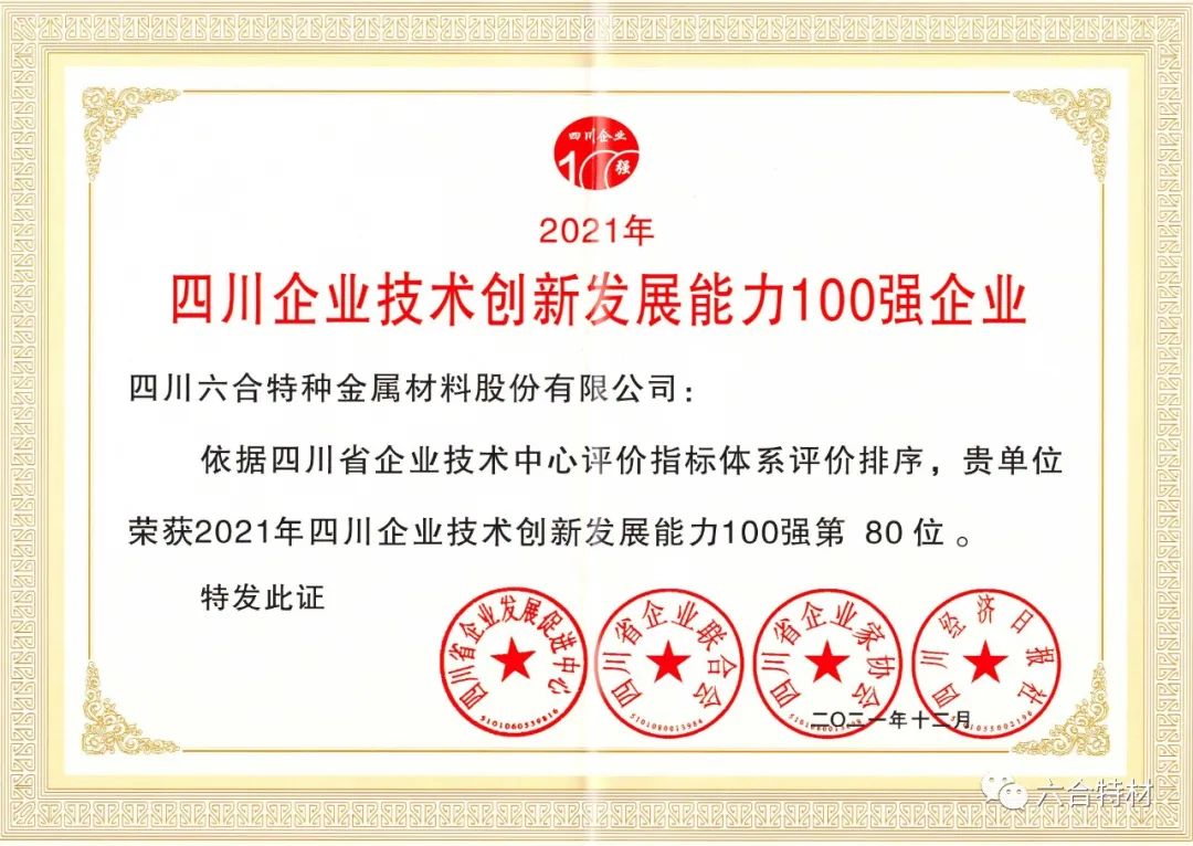 据了解,四川企业技术创新发展能力100强系列榜单是目前全国唯一的省级企业技术创新发展能力百强榜单,榜单评选由四川省企业发展促进中心、四川省企业联合会/四川省企业家协会、四川经济日报社共同发起。