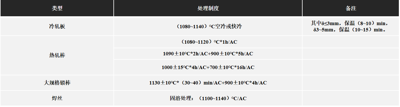 摘自HB/Z140、QJ/DT0160018、QJ/DT0160020、QJ/DT0160011各品种的热处理制度为: