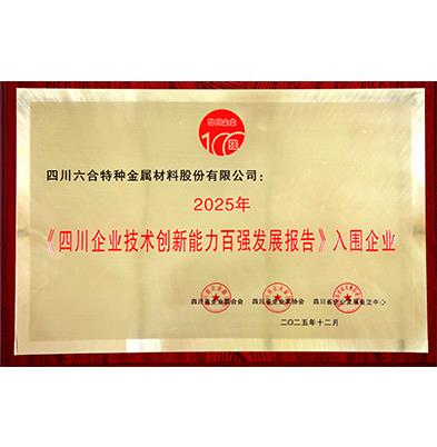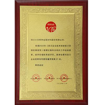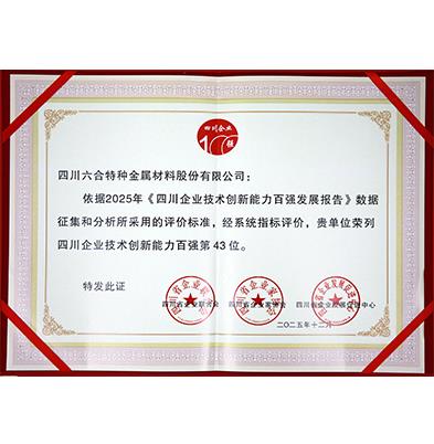 2025年四川企业技术创新能力百强证书-第43位